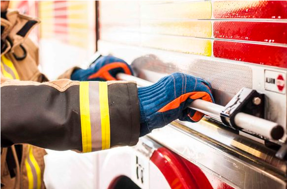"화재진압과 구조작업등의 동시 작업이 가능한 복합기능 장갑입니다."