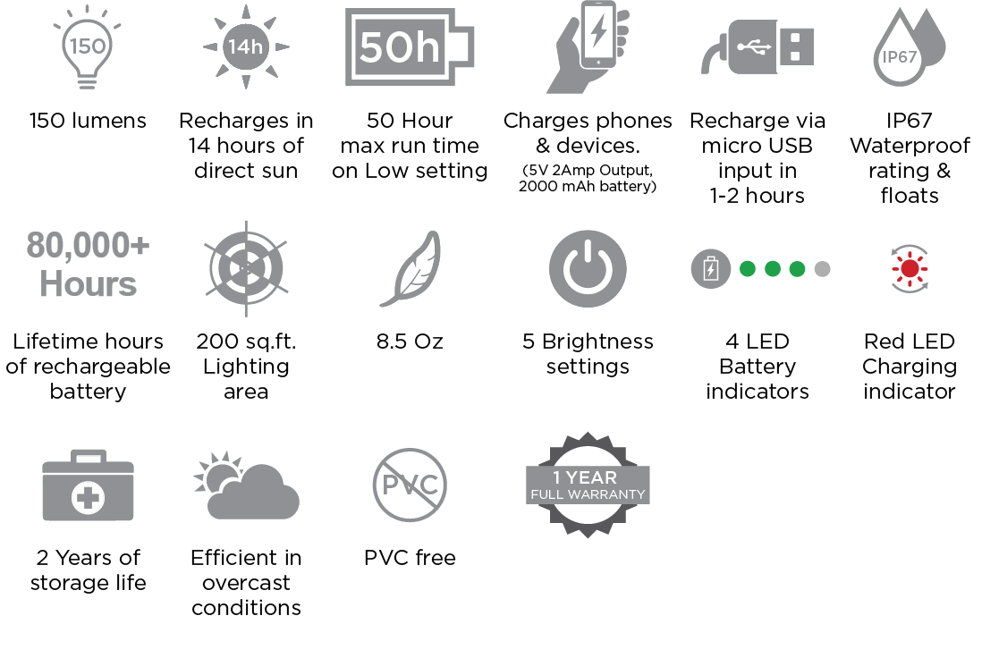 - USB, 태양광 충전
