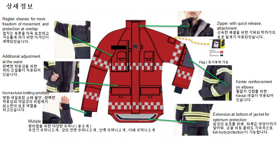 " 화재진압, 구조, 구급, 화재조사 등의 현장에서 화재, 열기 및 외부 충격 보호"