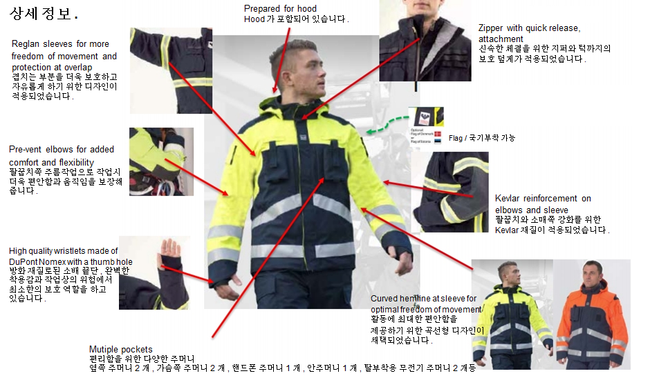 " 화재진압, 구조, 구급, 화재조사 등의 현장에서 화재, 열기 및 외부 충격 보호"