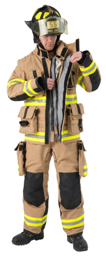 " 화재진압, 구조, 구급, 화재조사 등의 현장에서 화재, 열기 및 외부 충격 보호"